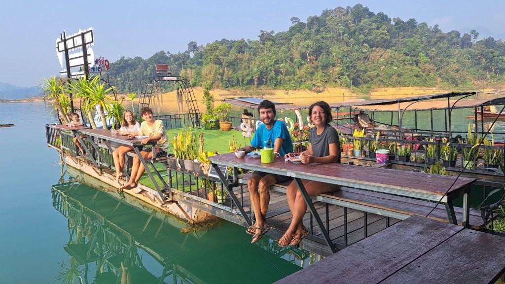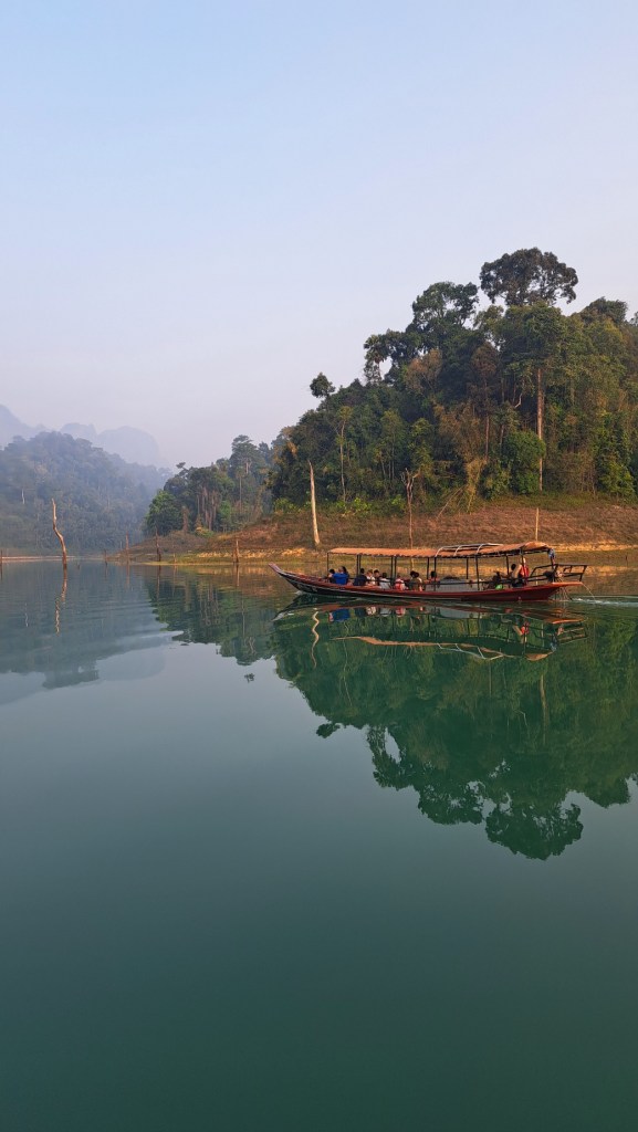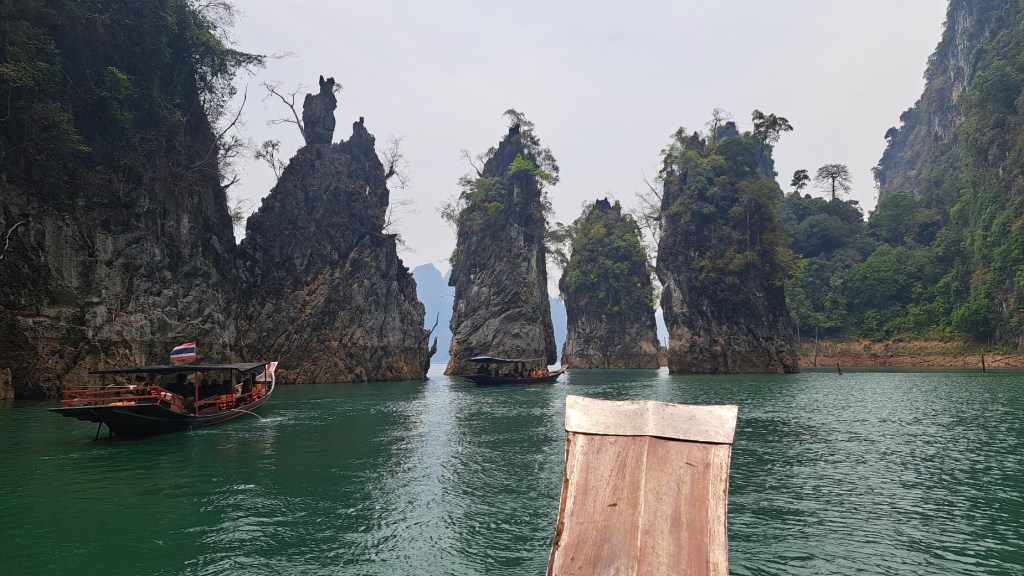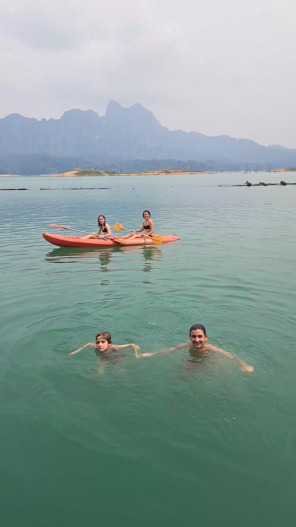 Pour notre deuxième journée nous avions réservé une excursion sur le lac de Khao Sok. Nous avons pris le bateau très connu en Thaïlande, le long tail boat, qui nous a amené à des bungalows flottants! Nous avons pu profiter de cet environnement incroyable et calme en nous baignant et en faisant du kayak. Une expérience inoubliable !!!