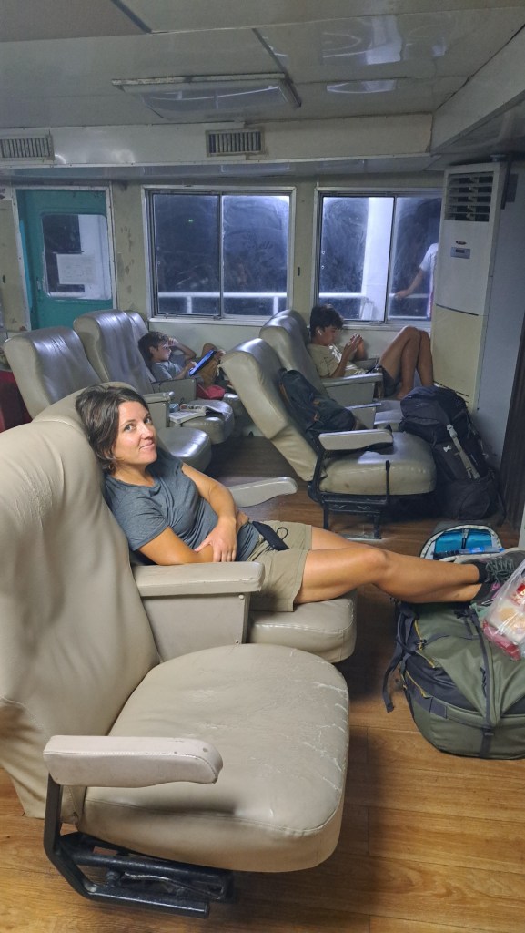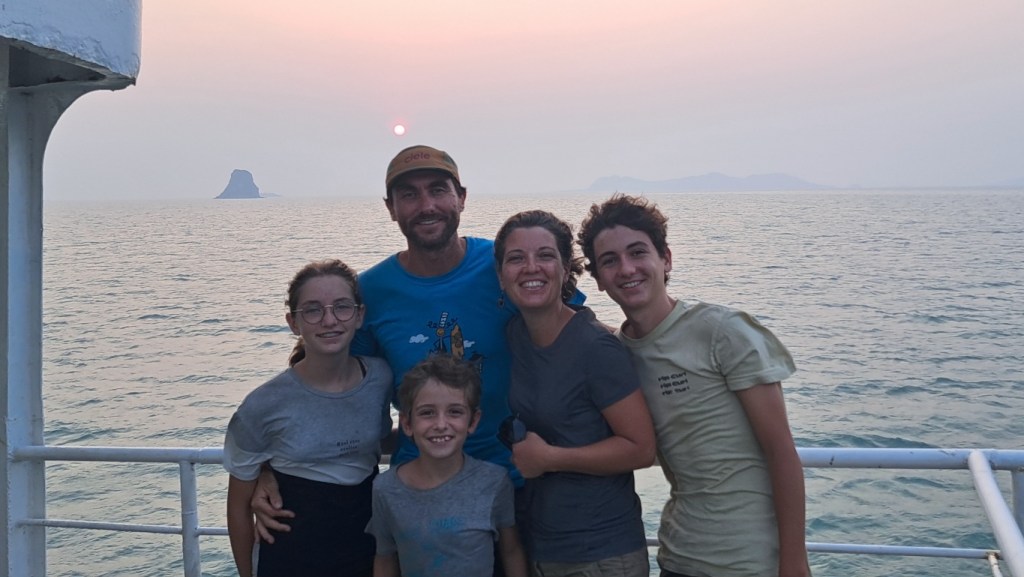 Nous avons ensuite repris un taxi ( où il n’y avait pas de clim 🥵) pour 2h de trajet pour ensuite prendre un ferry jusqu’à notre prochaine destination, l’île de Ko Phan Gan !!! 😉😉