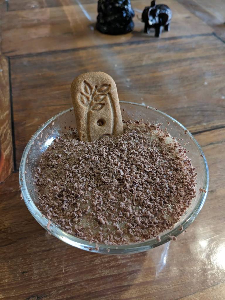 Et ce n’est pas encore fini, elle avait aussi préparé un dessert encore délicieux : une mousse à la banane 🍌 ! Génial