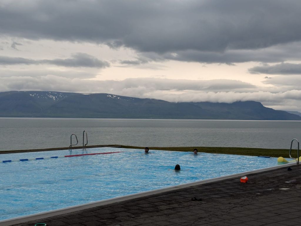 Petite baignade (encore une đ) dans une piscine face Ă un fjord. So nice !