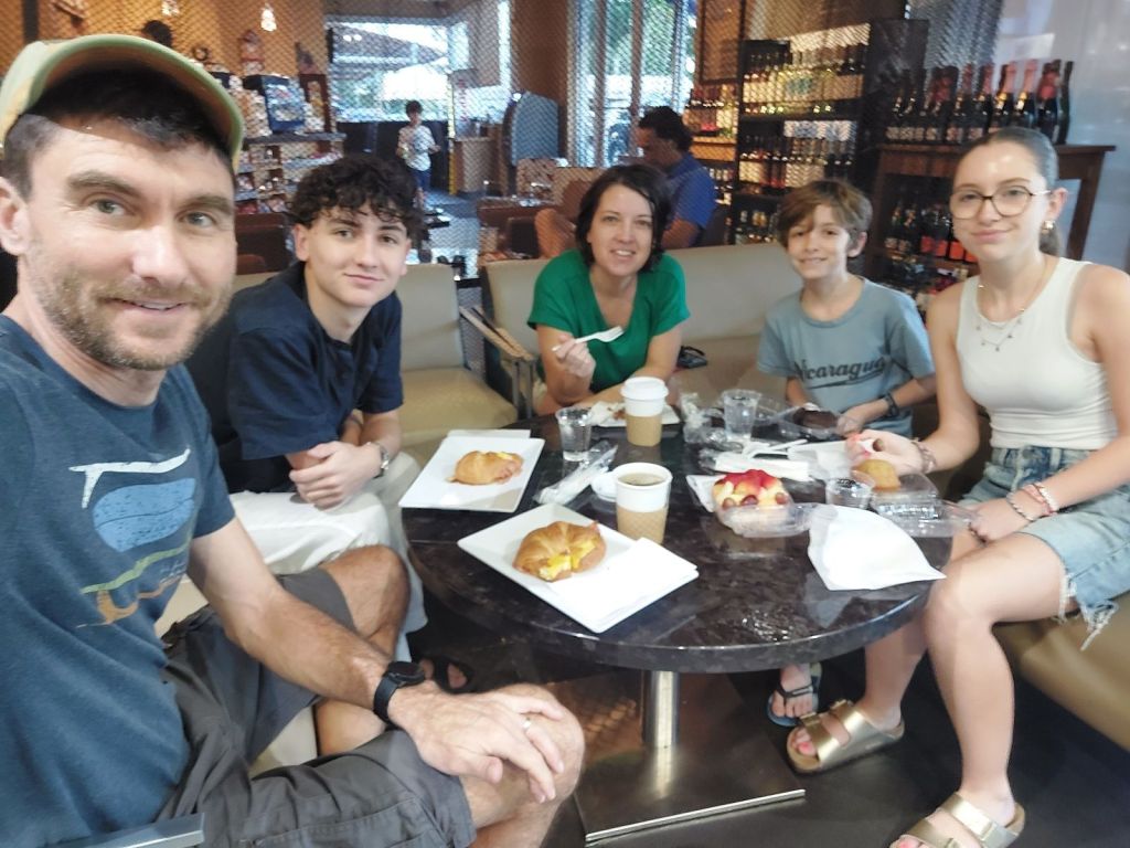 Avec le dĂ©calage horaire (6h de moins qu’en France), on se rĂ©veille tĂŽt, ce qui permet notamment Ă  MalĂ© de voir le lever de soleil.