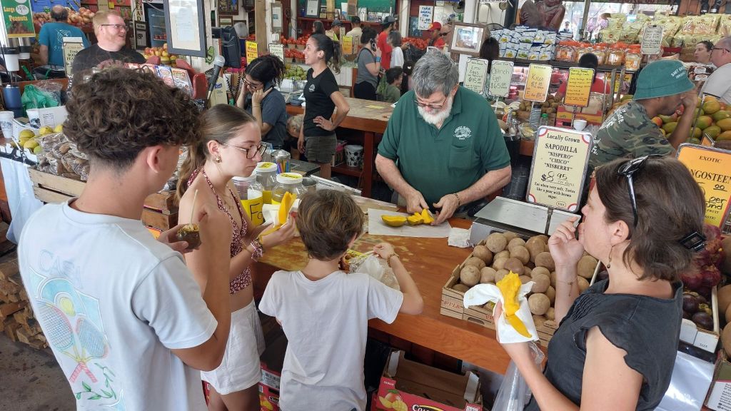 Il fait encore plus chaud et nous commençons par un stop au magasin de fruits et légumes très connu : « Robert is here ».