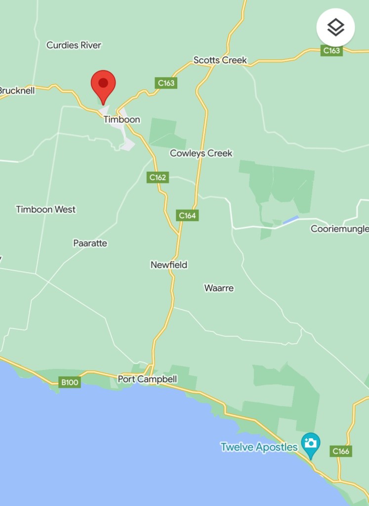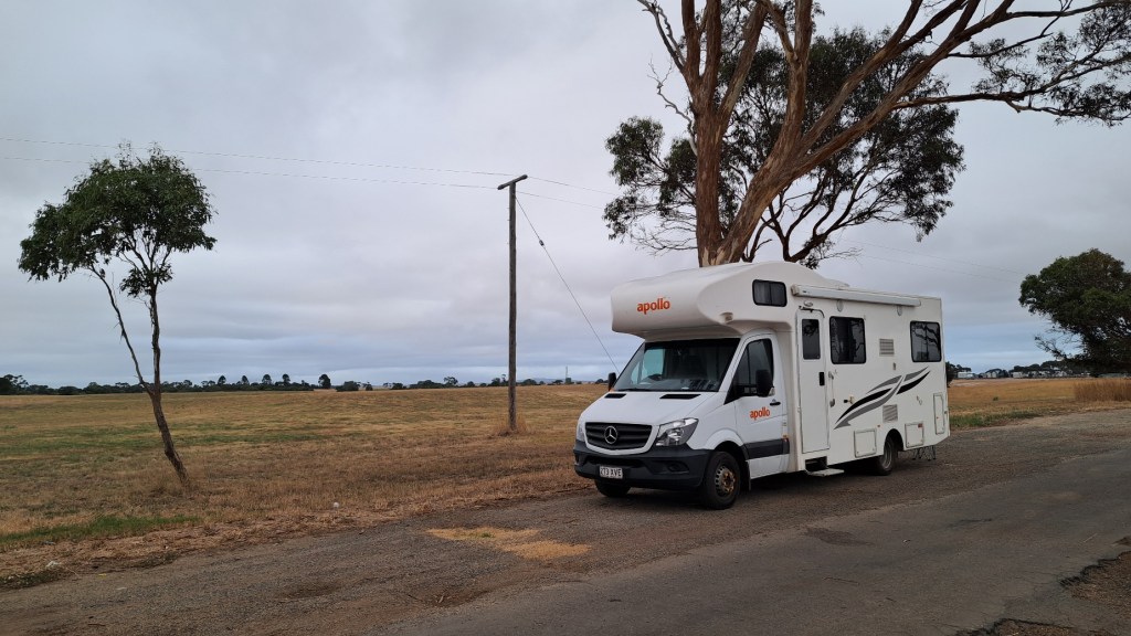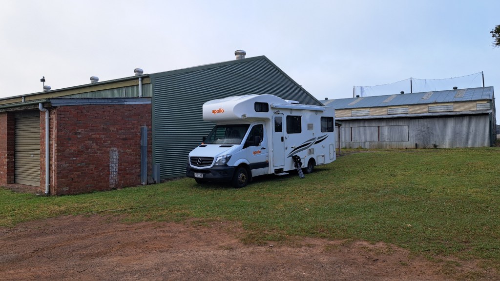 On s’écarte un peu et on arrive dans une charmante petite ville Timboon où on va finalement trouver un camping vraiment pas cher (12 €) sur les côtés d’un terrain de football australien.