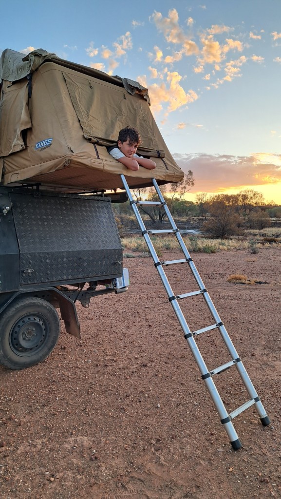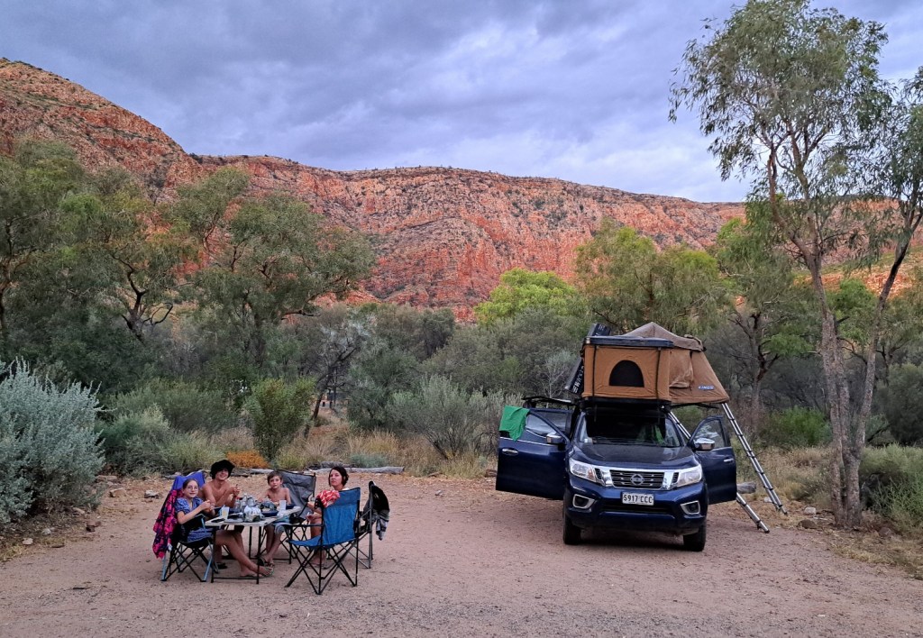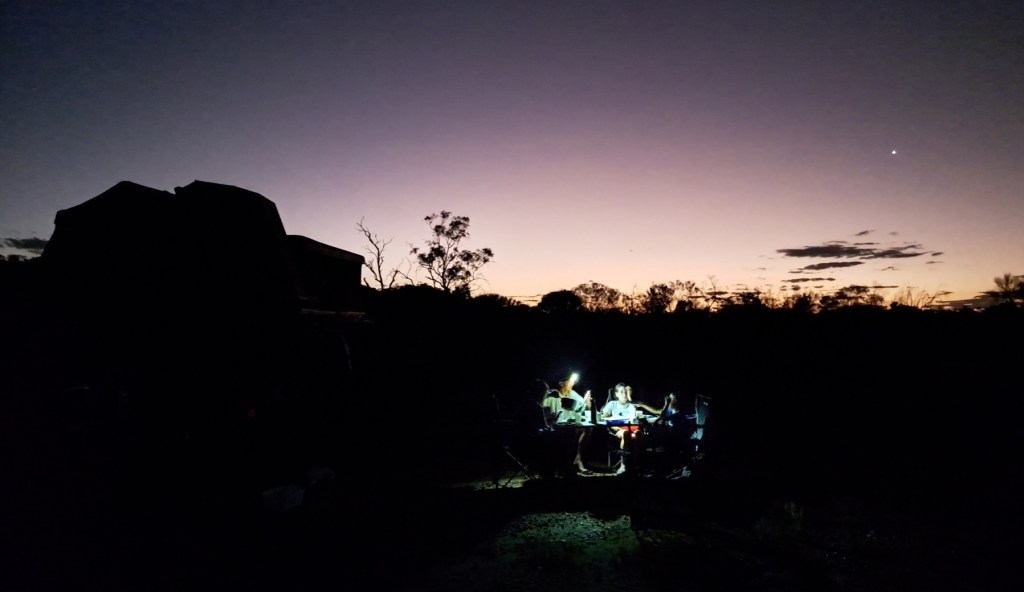 Nous sommes partis un peu tard d’Alice Spring (le temps de récupérer le pick-up, faire de l’essence et des courses) du coup, on trouve un coin bien isolé au dernier moment.