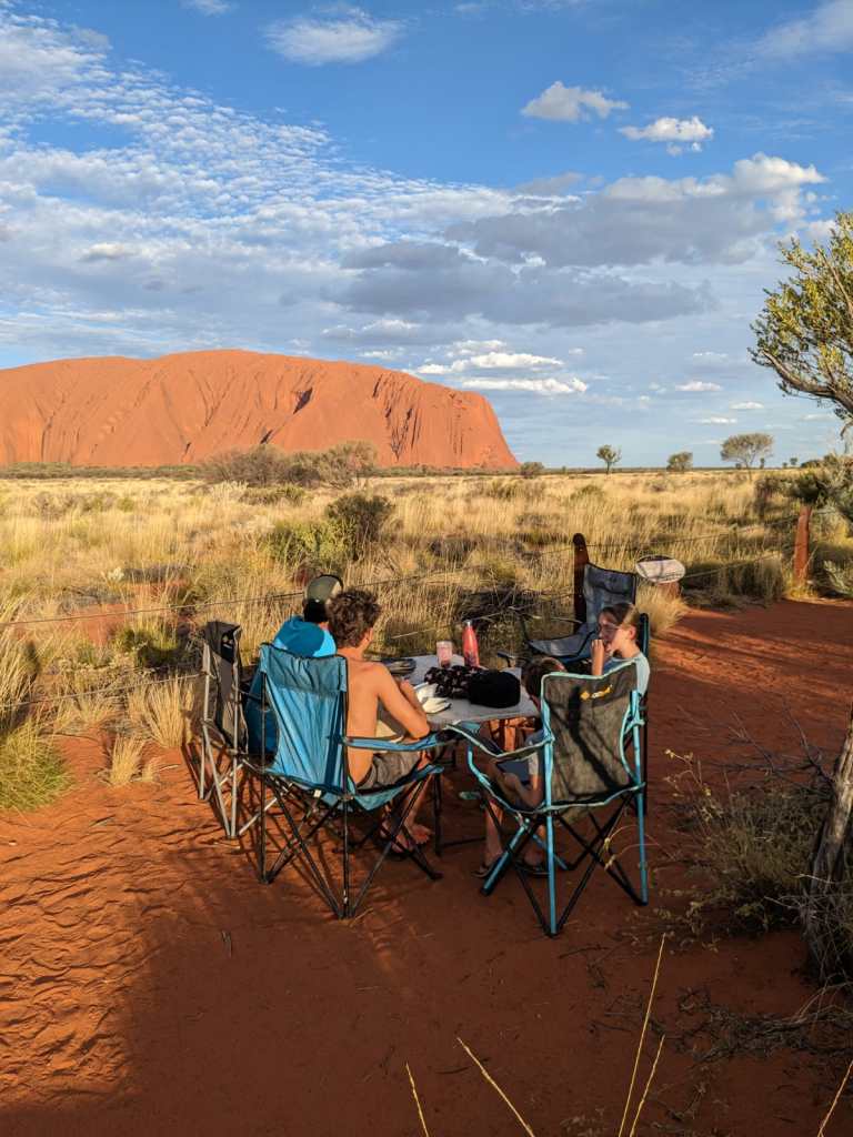 Les matins, ce sera petit déjeuner royal devant Uluru.