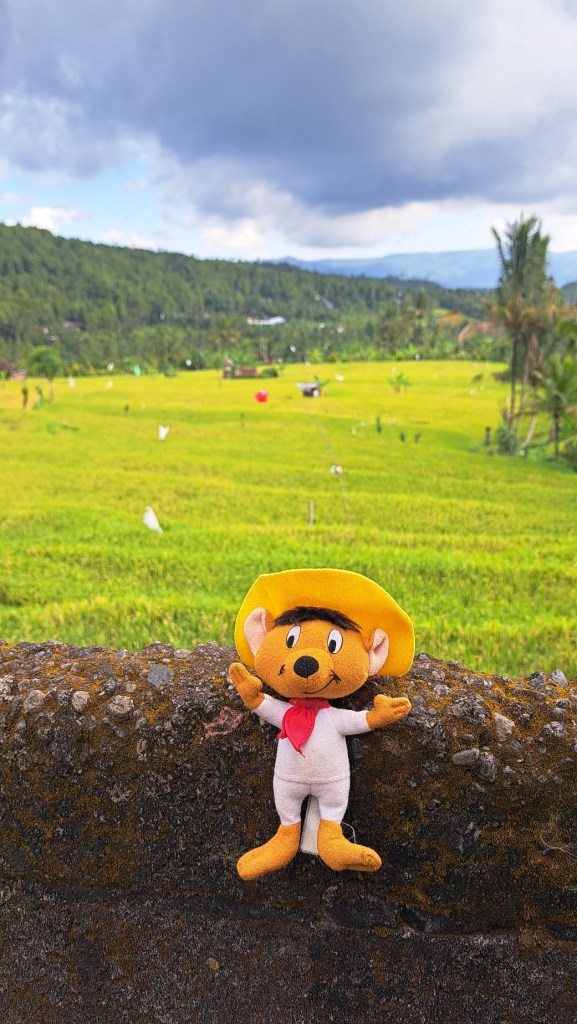 Et il me donne sa petite peluche Speedy Gonzalez qui était accrochée à son rétroviseur central de son pare brise avant et il me dit : « Prends Speedy en souvenir et accroche le dans ta voiture. Qu’il te porte chance et bonheur ! »